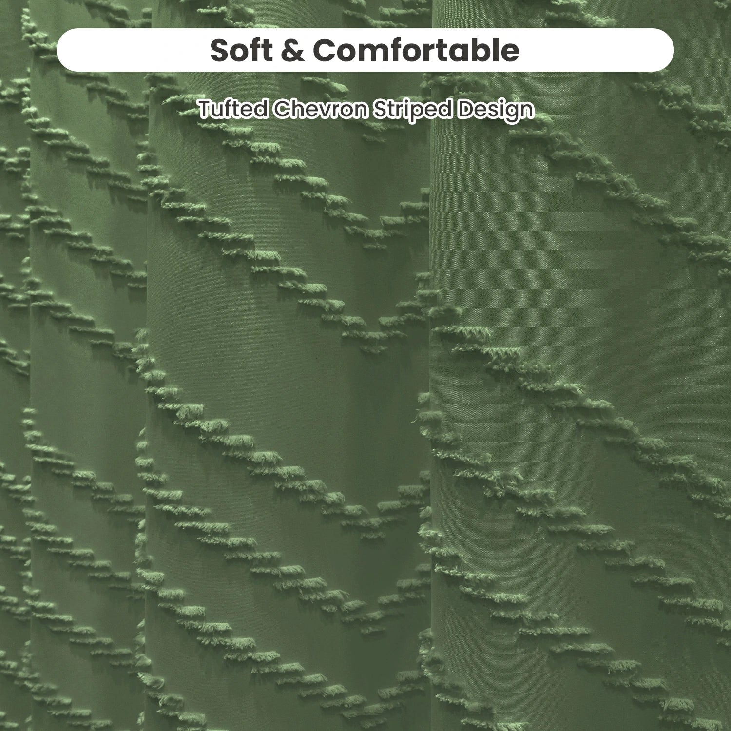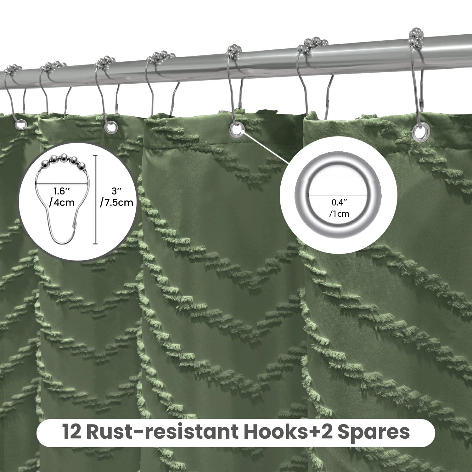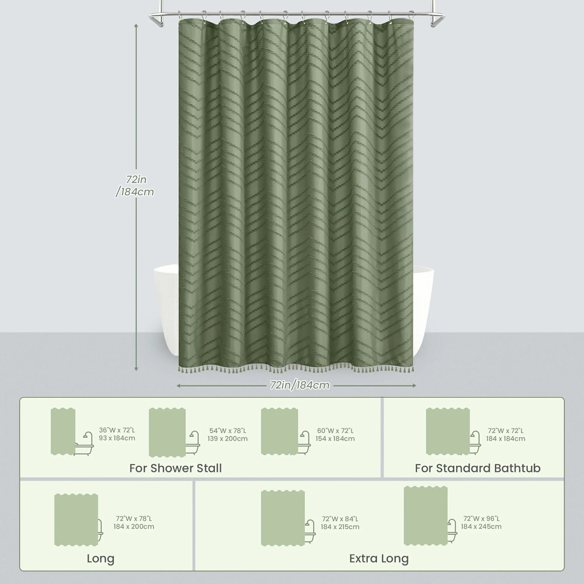 Tufted chevron texture brings a modern boho statement to your bathroom, while the water-repellent, quick-dry polyester helps keep splashes contained and daily upkeep simple. The curtain includes rust-resistant hooks with spares for reliable hanging, and the fringe tassel hem adds a finished look while helping reduce flutter for a calmer, more private shower feel. Soft, breathable fabric is machine washable and designed to resist fading and heavy wrinkles, making it an easy refresh for everyday spaces.
