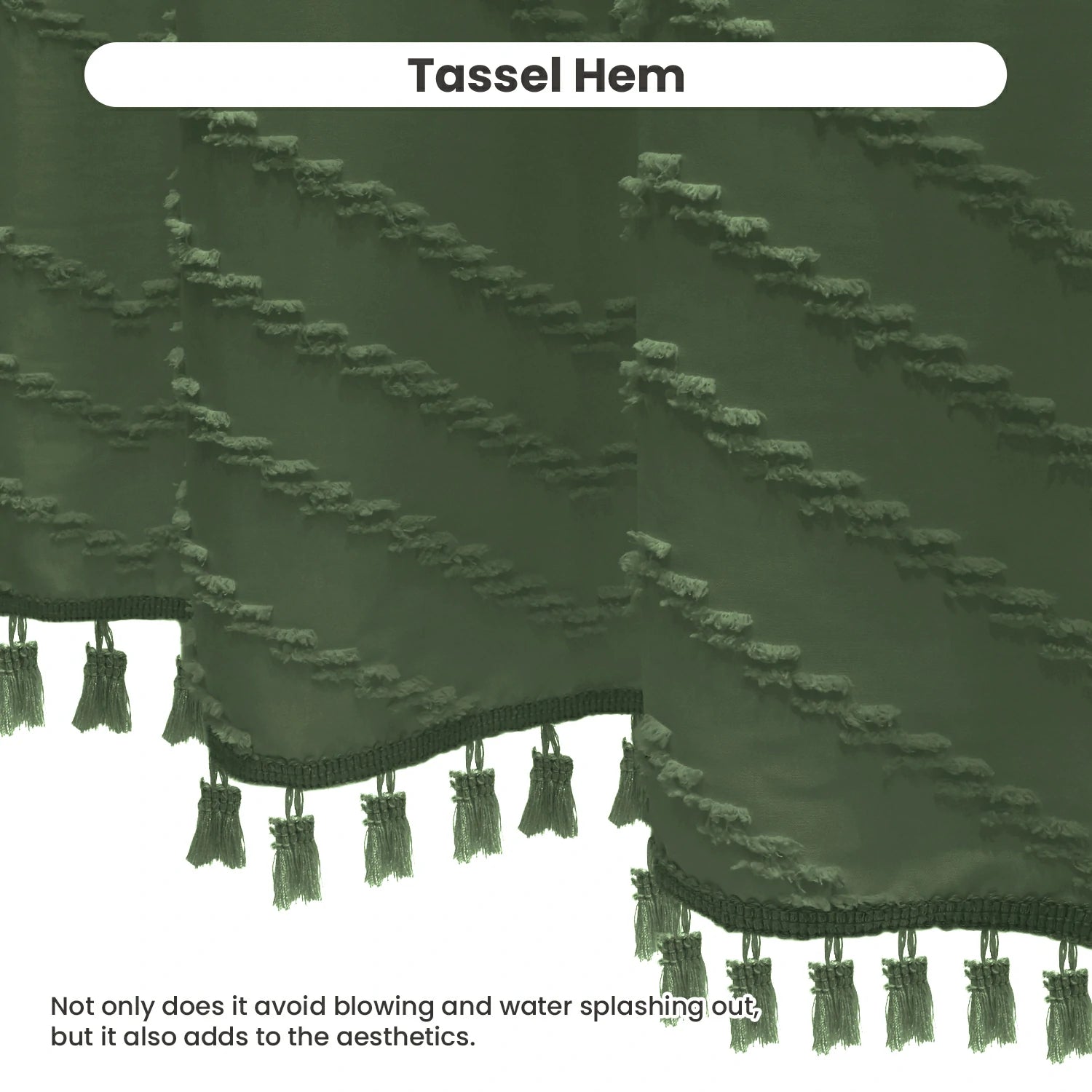 Tufted Textured Chevron Striped Tassel Shower Curtain