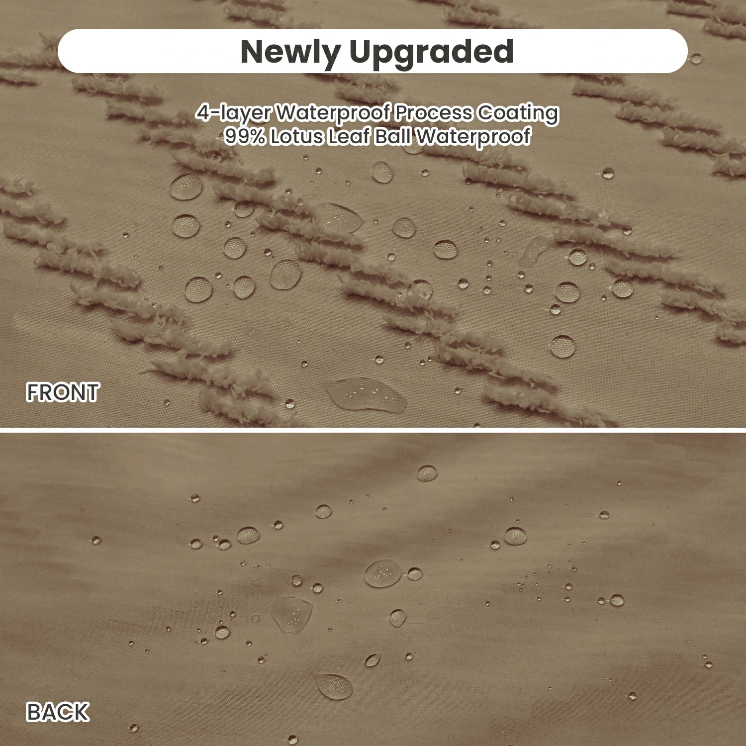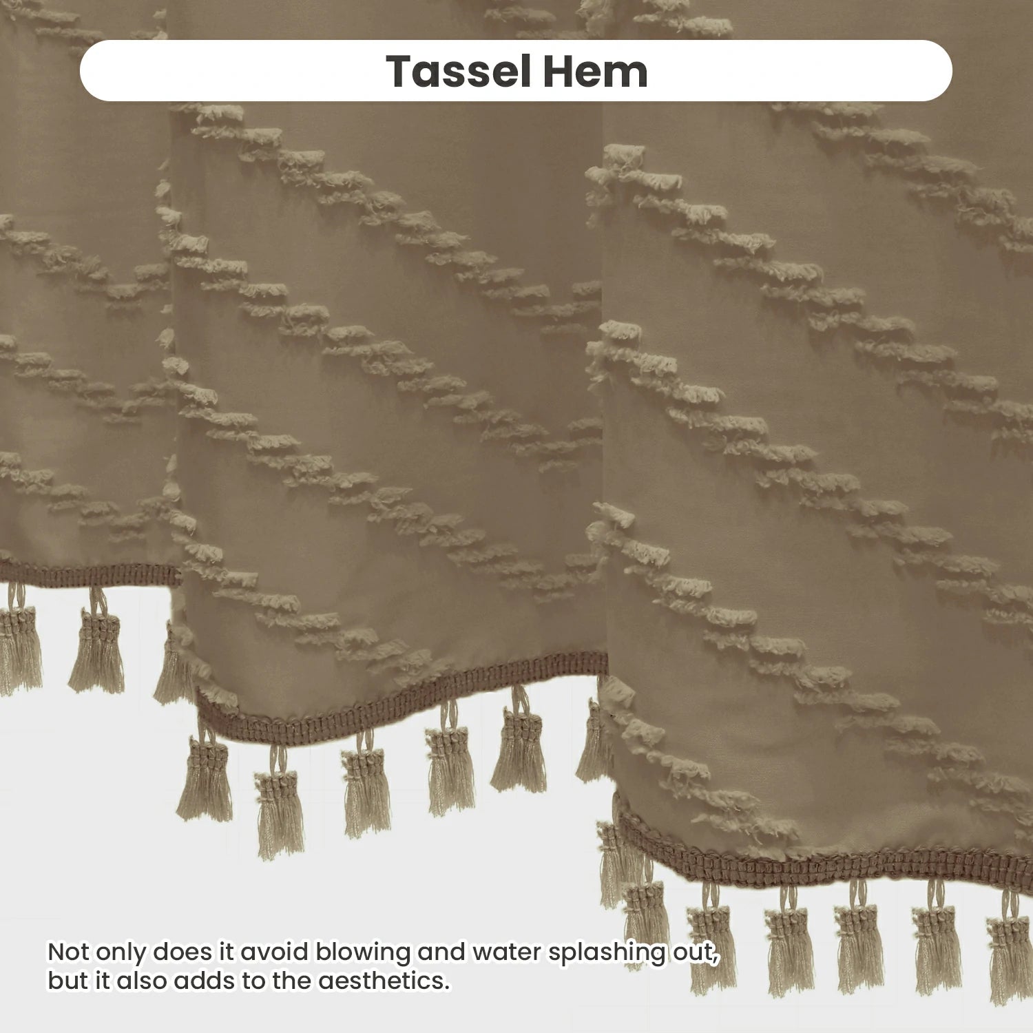 Tufted Textured Chevron Striped Tassel Shower Curtain (Beige)